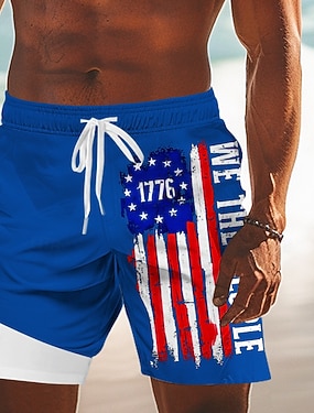 Homens Bandeira 4 de julho - 250º aniversário dos EUA Bandeira americana Bermuda de Surf Calção de Banho Calção Cintura Média Moda Roupa de rua Havaiana Casual Diário Streetwear Com Cordão Bolsos