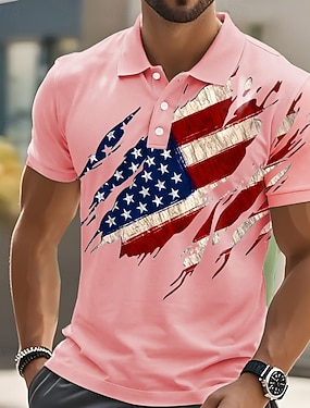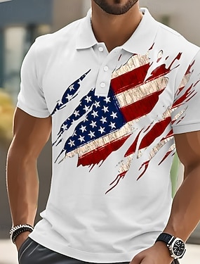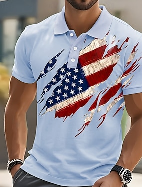 4 de julho de 2026 250º Homens American US Flag Pólo Manga Curta Camisas polo Camisas de colarinho Casual Ao ar livre Roupa Diária Impressão 3D Verão Azul Branco Azul Escuro