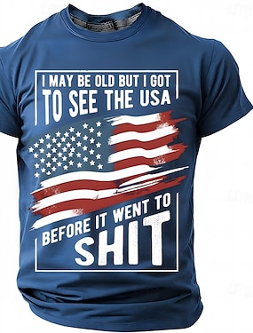 4 de julho de 2026 250º Dia da Memória T-Shirt Masculina Patriótica Patriota Gráfica Impressão 3D Bandeira Americana Veterano Gola Redonda Manga Curta