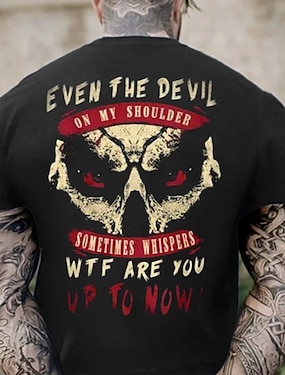 Camiseta Gráfica para Homens de Manga Curta Henley 'O Diabo Me Viu com a Cabeça Baixa Até Eu Dizer AMÉM' Motivacional Impressão 3D para Estilo de Vida e Resiliência