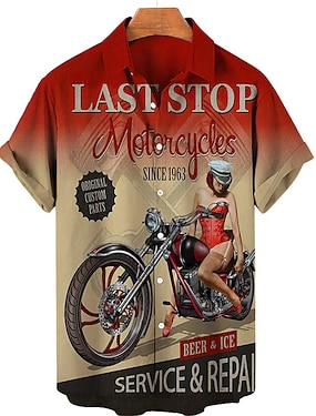 Homens Letra Motocicletas garota pin-up Camisa Social Camisa havaiana Camiseta Aloha Manga Curta Camisa Aberto para a Lateral Vintage Tropical Moda Rua Casual Havaiana Amarelo Claro Preto Amarelo S M
