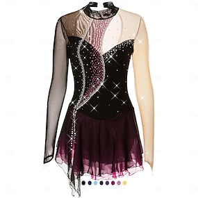Vestidos para Patinação Artística Mulheres Para Meninas Patinação no Gelo Vestidos Roupa Roxo Claro Roxo Escuro Preto e Roxo Sem costas Com Transparência Elastano Elasticidade Alta Competição Roupa