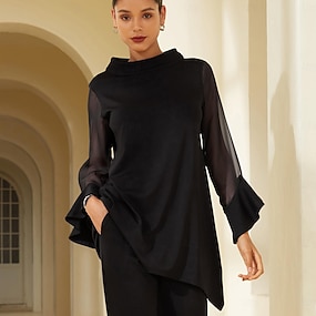 Camisa Social Blusa Mulheres Preto Branco Vermelho Cor Sólida / Simples Cordões Frufru Diário Moda Ombro a Ombro Normal S