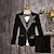 5 Peças Terno de Pajem Para Meninos Infantil Terno Blazer e colete e calças e camisa e gravata Casual Ao ar livre Festa Moda Legal Básico Côr Sólida Bolsos Botões Preto Pêlo de Coelho