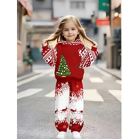 Natal Para Meninas 3D Gráfico Cada Árvore de Natal Conjuntos de Natal presente de Natal Conjunto de moletom e moletom Manga Longa Primavera Outono Diário Básico Casual Infantil 4-12 anos Com Capuz Ao