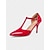 Sapatos de salto slingback vintage femininos vermelhos e pretos dos anos 50 com laço – sapatos retrô de bico fino e salto médio para encontros românticos, Dia dos Namorados, casamentos e festas.