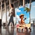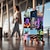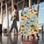 Capa protetora elástica para mala de viagem com estampa de paisagem.