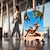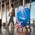 Capa protetora elástica para mala de viagem com estampa inspirada no oceano.