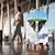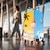 Capa protetora elástica para mala de viagem com estampa de paisagem de praia.