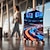 Capa protetora elástica para mala de viagem em estilo náutico.