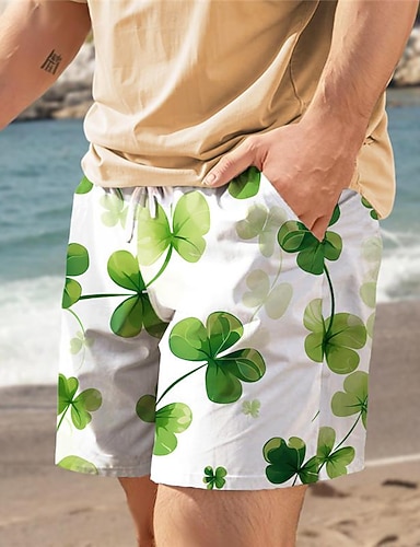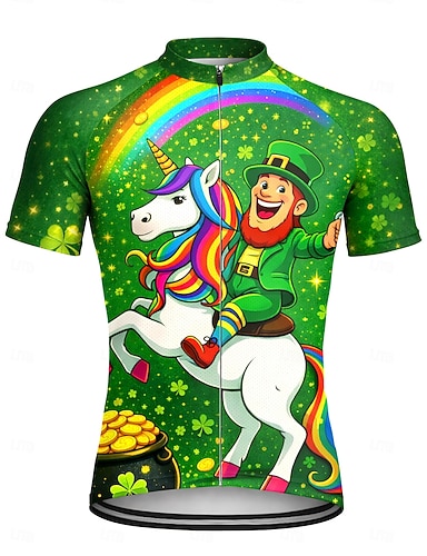 Camisa de Ciclismo Masculina St Patrick Jersey Camisa de Downhill Quatro Folhas Trevo Manga Curta Camisa de Ciclismo T Shirt Top com 3 Bolsos Traseiros Resistente a UV Secagem Rápida Com Bolsos Zíper