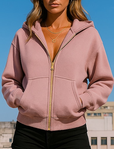 Mulheres Cor Sólida Casaco com capuz Moletom com zíper Outono Com bolsos Manga Longa Roupa Esportiva Equitação Corrida Exterior Viagem Férias Preto Branco Rosa Roupa de esporte Roupas Esportivas