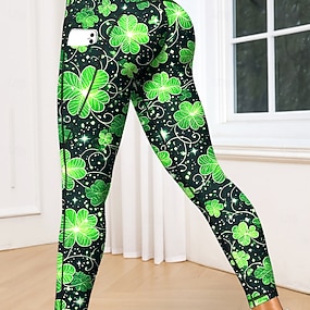 Mulheres Leggings Leggings aconchegantes Férias Casual Comprimento total Cintura AltaPantsDia de São Patrício Gráfico Clover Estampado Confortável Elasticidade Alta Casual Diário Férias Geada Verde