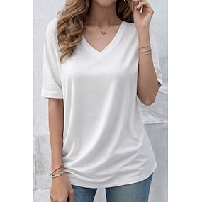 Mulheres Camiseta Camisetas Côr Sólida à moda Casual Manga Curta Decote V Tops longos Diário Para Noite Preto Branco Vinho Azul Marinha Verde Escuro Verão Primavera
