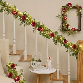 elegante festa de casamento recepção flor rosa hera folha led luzes de corda de fada – 2m 20leds guirlanda de rosas luzes de fio de cobre para dia dos namorados, decoração de casa