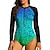 Mulheres Anti Atrito Roupa de banho Conjunto de maiô Leopardo Gradiente Abstrato UPF50+ Secagem Rápida Leve Manga Longa Camisa de Natação Zip Up Zíper Frontal Surfe Praia Esportes Aquáticos Verão