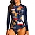 Mulheres Padrão Anti Atrito Roupa de banho Conjunto de maiô Geométrica Xadrez Tropical UPF50+ Proteção UV Secagem Rápida Manga Longa Camisa de Natação Zip Up Zíper Frontal Surfe Praia Esportes