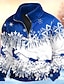 Natal Homens Floco de Neve Camisas Polo com zíper Manga Longa Camisas polo Lapela Casual Ao ar livre Traje de festival Impressão 3D Primavera Outono Inverno Azul Céu Vermelho 1 Azul