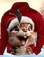 Natal Homens Animal 3D Moletom Esportes Moda Com Zíper Casa Festa Trabalho Vermelho vermelho 2 Zip Up Outono Todas as Estações Designer