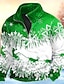 Natal Homens Lanternas Camisas Polo com zíper Manga Longa Camisas polo Lapela Casual Ao ar livre Traje de festival Impressão 3D Primavera Outono Inverno Arco-íris Multi Color