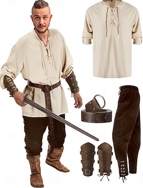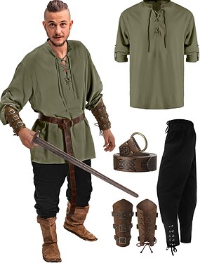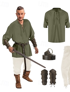Casais Pirata Viking Ranger Camisa protetores de braço Fantasias para casais de grupos de Halloween Vikings: Valhalla Retro Vintage Medieval Renascentista Adulto Homens Mulheres Dia Das Bruxas