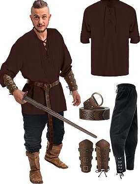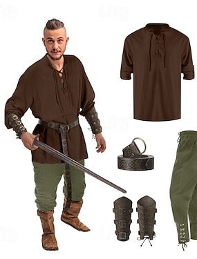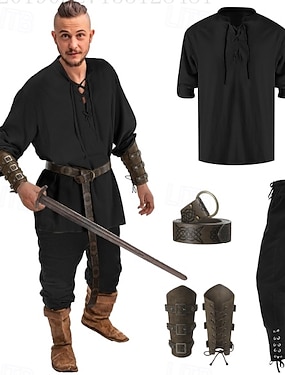 Punk e gótico Medieval Renascentista Roupa Guerreiro Fantasia Homens Mulheres Unisexo Celta Viking Fantasia Dia Das Bruxas Carnaval Baile de Máscaras Espetáculo LARP Ren Faire Adulto Mais Acessórios