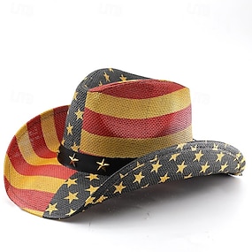 250º Aniversário EUA Ocidental Chapéu de caubói chapéu de vaqueira vaqueira Vaqueiro Cowboy do Oeste Fantasia Unisexo Baile de Máscaras 4 de julho Festa Dia da Independência Adulto Chapéu Todas as