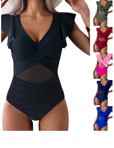 Mulheres Roupa de banho Maiôs One Pieces Cor Sólida Com Transparência Proteção UV Elástico Sem Manga Roupa de Banho roupa de banho Surfe Mergulho Natação Verão