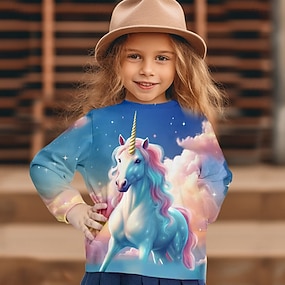 Para Meninas 3D Unicórnio Camiseta Camisas Manga Longa Impressão 3D Outono Inverno Ativo Moda Estilo bonito Infantil 3-12 anos Gola Redonda Ao ar livre Casual Diário Normal