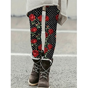Mulheres Leggings Leggings aconchegantes Vintage Moda Roupa de rua Comprimento total Cintura AltaPantsNatal Floral Gráfico Estampado Tosão Térmico / Quente Confortável Com Stretch Ao ar livre Casual
