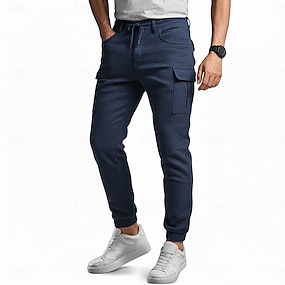 Homens Waffle Calças Cargo Calças Esportivas Corredores Calças Com Cordão Côr Sólida Conforto Comprimento total Ao ar livre Diário Streetwear Férias Moda Azul Marinha Marron Com Stretch