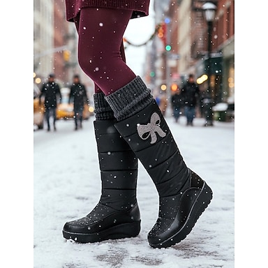 Botas de inverno femininas impermeáveis - botas de neve vermelhas acolchoadas com laço e detalhe de strass, sola antiderrapante, ideais para clima nevado, atividades ao ar livre e uso casual no