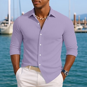 Homens Camisa Social Camisa Waffle Camisa casual camisa de botão Preto Branco Vinho Azul Marinha Marron Manga Longa Tecido Lapela Casual Diário Roupa Moda Roupa de rua