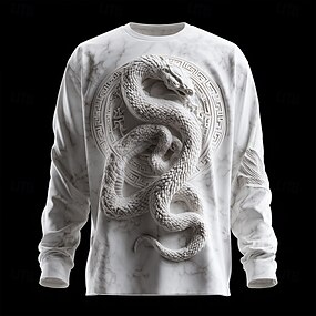 Homens 3D impressão Cobra Camiseta Manga Longa Camiseta Impressão 3D Gola Redonda Camisa Moda Exagerado 3D Diário Rua Branco Branco 2 Verão Primavera Outono Roupa S M L XL XXL XXXL
