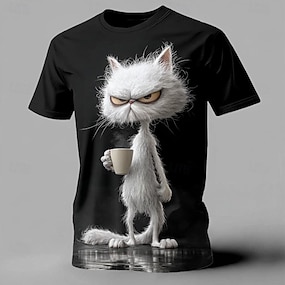 Homens Gato Camiseta Manga Curta Camiseta Impressão 3D Gola Redonda Camisa Tropical Havaiana Férias Rua Diário Branco Verão Primavera Roupa S M L XL XXL XXXL
