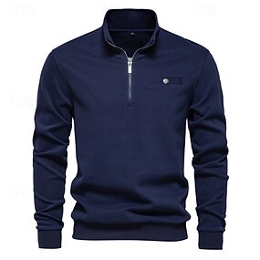 Homens Moletom Moletom com zíper Preto Branco Verde Tropa Vermelho Azul Meio Zíper Vaca Half Zip Desportos e Ar livre Diário Feriado Poliéster Roupa de rua Básico Casual Outono Inverno Roupa Moletons