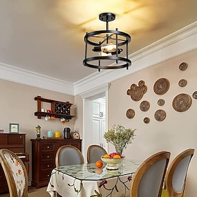 Luminária de teto industrial rústica com 2 luzes semi-embutida, luminária redonda preta fosca para cozinha, ilha, sala de jantar, quarto, fazenda, foyer, corredor, porta frontal 110-240v