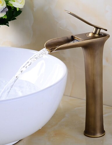 Torneira da pia do banheiro, cascata de latão conjunto central torneiras de banho de um furo