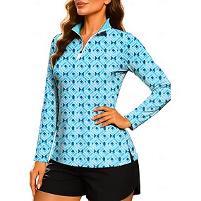 Mulheres Geométrica Bloco de cor Arte abstrata Tops Camisa Camisa Esportiva Camisa polo de caminhada Manga Longa Bolinhas Listas Imprimir UPF50+ Resistente a UV Proteção UV Elástico Respirável