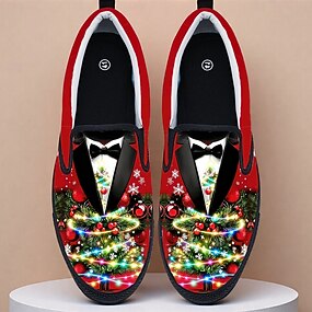 Sapatos masculinos sem cadarço do Papai Noel – modernos e divertidos, ideais para compras de Natal, viagens de férias e para um look casual natalino.