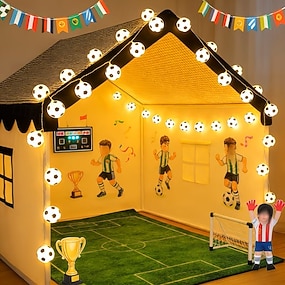 Luzes de cordão com tema de futebol, 3m, 20 LEDs, para decoração de ambientes internos, alimentadas por bateria, ideais para festas temáticas de esportes, presentes, Páscoa, Dia dos Namorados e outras ocasiões.