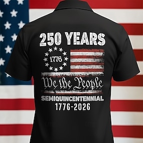 4 de julho de 2026 250º Homens American US Flag Camisas Polo Manga Curta Camisas polo Camisas de colarinho Casual Roupa Esportiva Botões Primavera Verão Azul Preto 3 Preto 1