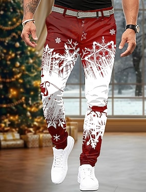Natal Homens Árvore de Natal Floco de Neve Padrão de natal Camiseta Camisetas engraçadas Manga Longa Camiseta Impressão 3D Gola Redonda Camisa Diário Ao ar livre Casual Festa Casual Feriado Vermelho