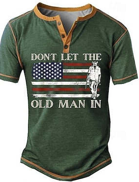 Festival de Música Homens Gráfico Bandeira americana Velhote Camiseta Manga Curta Camiseta Impressão 3D Gola Redonda Camisa Retro Vintage Casual Estilo de rua Esportes Feriado Para Noite Preto Verde