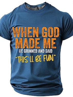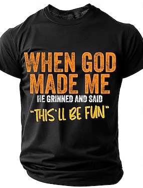 Camiseta Masculina da Bíblia Manga Longa Camiseta Gráfica "Quando Deus Me Fez Isso Vai Ser Divertido" Camiseta Engraçada com Citação de Estilo de Vida
