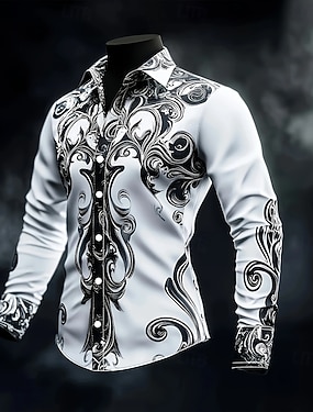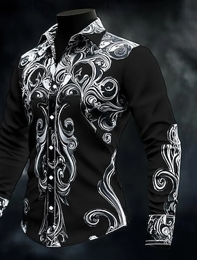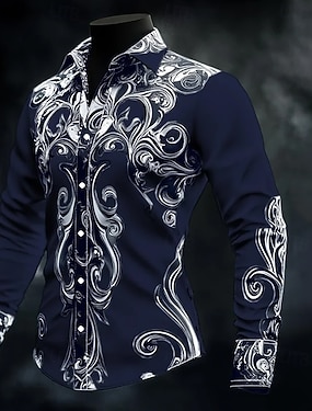 Homens Camisa Social Blusa de cetim Saia camisa de botão Floral Traje de festa para noite Vermelho Azul Dourado Cinzento Manga Longa Aberto para a Lateral Verão Primavera Roupa Abotoar