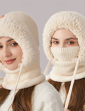 Gorro de inverno quente para atividades ao ar livre, com gola integrada, máscara para ciclismo, proteção para a cabeça em esportes e esqui, à prova de vento e frio, peça única, estilo pulôver.