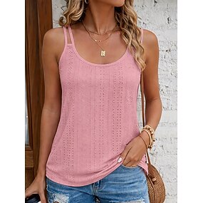 Mulheres Camiseta T-shirt Ilhó Tecido Moda à moda Clássico Sem Manga Gola Redonda Decote Redondo Tops regulares Diário Para Noite Final de semana Branco Amarelo Rosa Vinho Fúcsia Verão Primavera