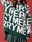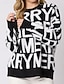 Mulheres Suéter Pulôver Moda Roupa de rua Casual Letra Gola Redonda Tricotado Imprimir Manga Longa Tops regulares Tricotar Natal Diário Feriado Preto Rosa Outono Inverno
