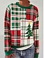 Mulheres Suéter Pulôver Elegante Moda Roupa de rua Côr Sólida Gráfico Árvore de Natal Gola Redonda Patchwork Tricotado Imprimir Manga Longa Tops regulares Tricotar Natal Diário Feriado Vermelho Azul